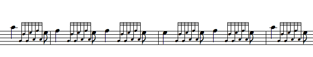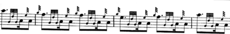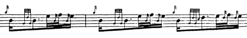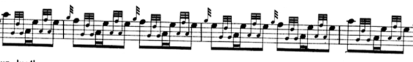 Like the crunluath a mach, the taorluath a mach also maintains the rounder rhythmic structure (dotted 6/8) and avoids the low As: